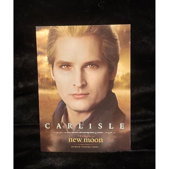 This is an official NECA The Twilight Saga: New Moon premium trading card, featuring Dr. Carlisle Cullen, the patriarch of the Cullen vampire family. This card is no longer in production, making it a highly sought-after collectible, especially for a real Twilight fan. It was bought for collection only, stored with my other Twilight treasures, and protected all these years. Please see the provided photos for further details (props not included).