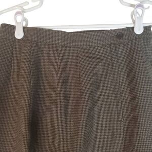 Collectible Gold By Giorgio Sant Angelo Micro Houndstooth Pleated 100% Pure Wool Skirt Brown Size 10