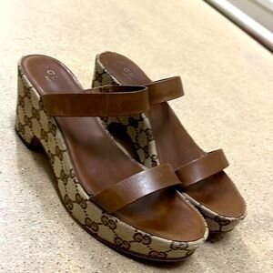 Rare and collectible! Very nice condition. they’re just a little too big for me. Tan with monogram Gucci GG. Absolutely so cute. Size 40 fit 9.5