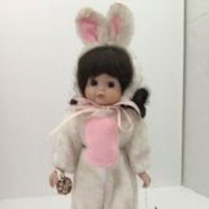 Collectible House Of Lloyd Christmas Around The World Bunny Porcelain 14" Doll with Easter Basket & eggs. In nice previously owned condition. Head and arms have no chips, cracks, etc. Bunny suite could use washing. From a non-smoking pet-free collector. Retail $99 now only $59 with a FREE Bonus "Thank You" Gift!