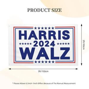 - Design: “HARRIS 2024 WALZ” with red/white/blue stars and border