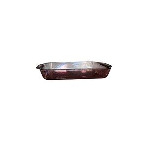Collectible Pyrex Visions cranberry glass rectangular baking pan.
