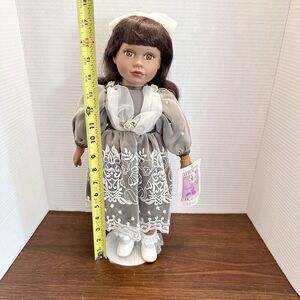Collectible Memories Genuine Porcelain Doll Oprah African American 17" Girl Lace