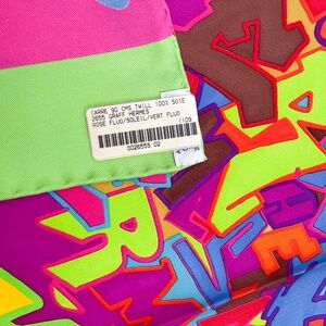 This scarf was part of Hermès’ push to bridge luxury craftsmanship with contemporary street culture, drawing a whole new generation of collectors. Designer: Kongo, real name Cyril Phan, a contemporary French-Vietnamese artist and internationally known graffiti artist. First Issued in 2011. 90cmx90cm (35"x35"). Made in France and 100% silk.