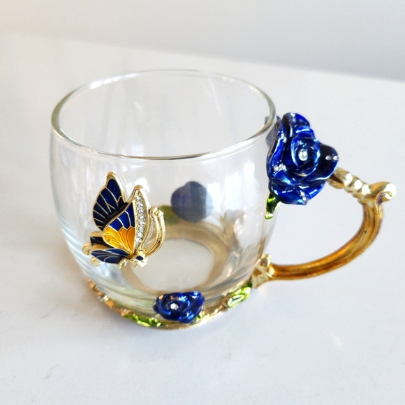 Collectible Tea/Coffee Cup with Floral, Butterfly, and Rhinestone Designs