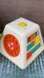 This activity box spins around and has a different activity on each panel. There is a mirror and other noise making gadgets that babies love. noise making gadgets and a mirror. Everything works.