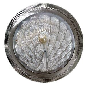Collectible Vintage Ornately Carved Mother Of Pearl Peacock Cosmetic Compact