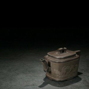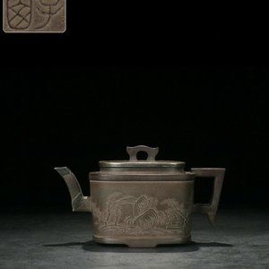 Collectible Zisha Clay Teapot Mud Painting Style bu Ji Shan H8.3*14.8*7.8cm