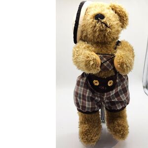 Collectible stuffed bear with stand. Bear is wearing a German Lederhosen and cap. Great vintage condition. We have a set of 8 bears for sale so please visit our shop to see all Kent Collectibles Bears. We will combine shipping at a reduced cost if you purchase more than one. Each measures ~10" tall (may vary slightly).