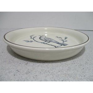 Collectible 'rubel & co.' Cream Glazed with Blue Bird Design 1" Deep Round Plate. 7.5 inch diameter round - 1" deep plate. Color and surface are good. A replacement to a dinner service set, serving plate fro cookies or dessert - or, home decor display! Gently worn. Very good condition. All measurements are approximate. J0222