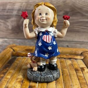 Collectible 4th of July Resin Girl Figurine 4” Tall