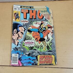 Are you a Thor fan? We have a 1977 Thor comic book. It has some damage as seen in the pictures. Also included is a NERF: Thor Hammer Strike Power (darts not included and has not been tested), Marvel Avengers 13" Hammer 2019 Hasbro. The spring action is a little loose so doesn't shoot the darts. Can possibly be fixed. There is a Thor pez dispenser