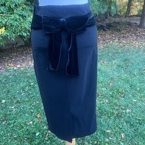 Sleek black pencil skirt by Collectif. Perfect for the holidays as the back of the skirt has a black velvet bow detail. UK 12 (medium). From a smoke free, cat friendly home.