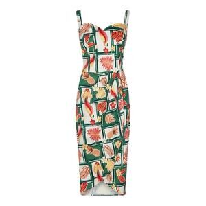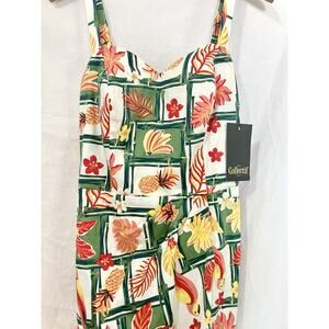Collectif Green and Red Tropical Print Mini Dress