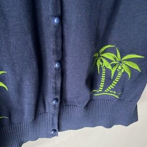 Collectif Modcloth Navy Blue Palm Tree Embroidery Button Front Crop Cardigan XL