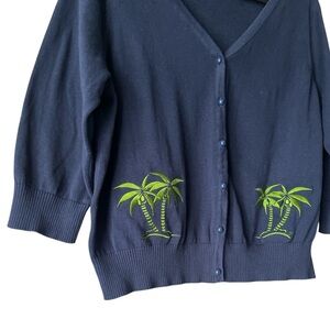 Collectif x Modcloth Navy Blue Palm Tree Embroidery Button Front Crop Cardigan XL