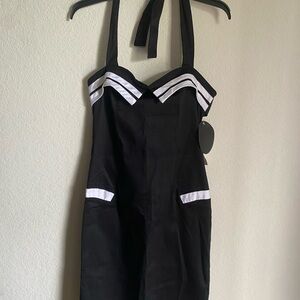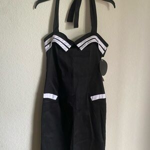 Collectif Retro Sailor Halter Rockabilly Straight Pencil Pin Up Black Dress 10