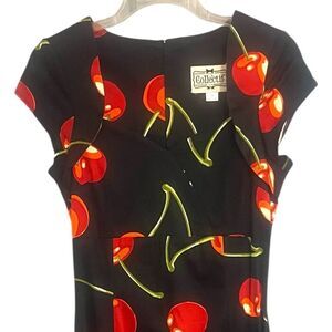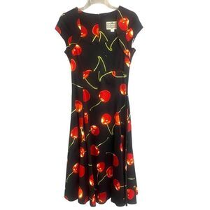 Collectif Dolores Doll Cherry Pin Up 50’s Style Cap Sleeve Midi Dress Sz 4