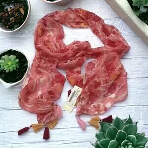 Collection 18 Womens Pink Floral Tasseled Rectangle Scarf 12x96 NWT