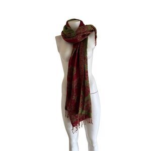 Collection 18 Red green leaf scarf fringe tassel Autumn
