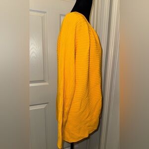 Embrace the cozy warmth of this Collection B cardigan, featuring a vibrant yellow hue and a textured ribbed knit. Its open-front design and relaxed fit make it an ideal choice for layering during cooler weather. The medium to heavyweight knit ensures comfort and style in one elegant piece.