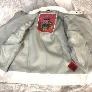 Collection B by Bernardo Grey Ivory Moto Biker Style Faux Leather Jacket sz L