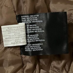 Shell: cotton; lining, fill and faux fur: polyester