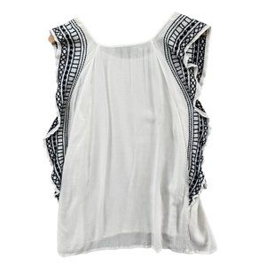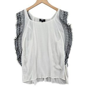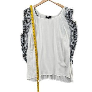 Collection Bobeau Skyler Flutter Sleeve Top Womens White Black Embroidered Sz M