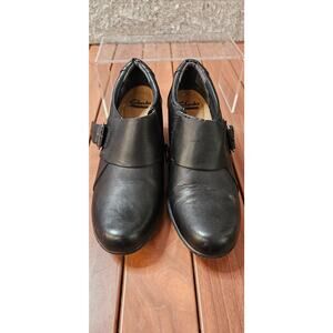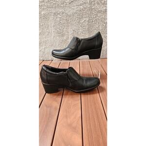 Collection By Clarks Comfort Womens Sz 6.5M Black Loafers Heels Side Zip