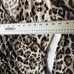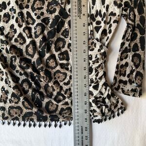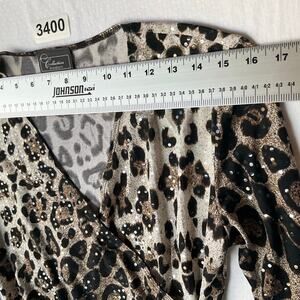 Collection Dressbarn Women 3/4 Sleeve Sexy Vneck Curvy Blouse size S,Leopard Tan