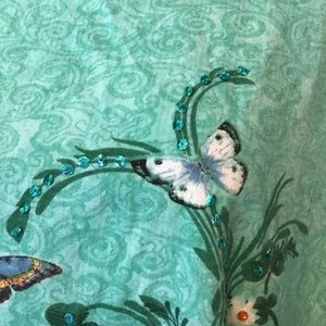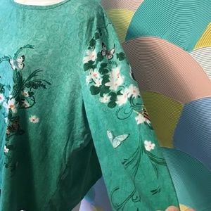 Collection ETC long sleeve shirt beautiful floral butterfly pattern with sequence color green size XXL