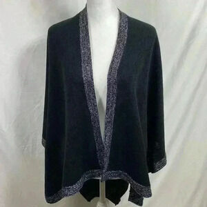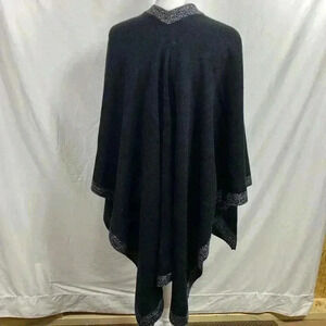 Collection Eighteen Black Shawl Cape with Silver Trim. One Size Fits All.