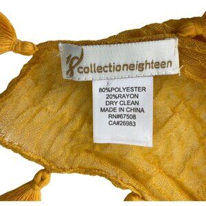 The Collection Eighteen Golden Yellow Tasseled Scarf is a chic, sheer accessory that adds a pop of color to any outfit. Made from a comfortable polyester/rayon blend, this scarf is lightweight yet warm.