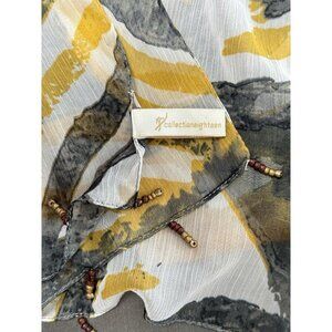 Boho Collection Eighteen Scarf Sheer Geometric Ivory Black Golden Yellow Animal Print Shawl Beaded Tasseled