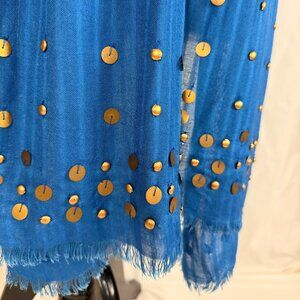Collection Eighteen Women's Scarf | OS | Blue with Embellishment & Fringe | 100% Rayon