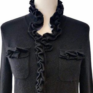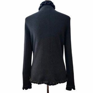 Collection Fifty Nine Womens Black 100% Cashmere Ruffle Trim Snaps Cardigan M
