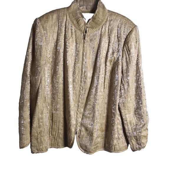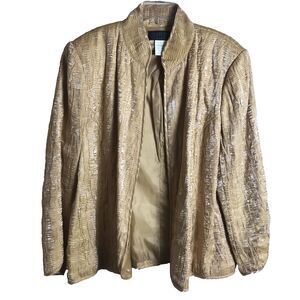 Collection Harv'e Benard Woman's Shiny Gold Crinkle Crape Style Jacket Size 18W
