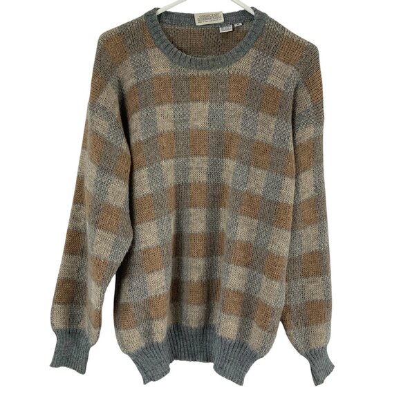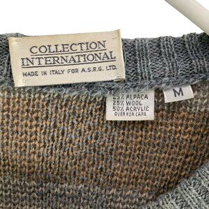 The Collection International Gray/Brown Plaid Crewneck Long Sleeve Sweater in size M is a stylish and versatile piece perfect for various occasions such as parties, casual wear, and work. Made from a blend of Alpaca, Wool, and Acrylic, this sweater offers a comfortable fit with a classic pullover style. The cable-knit fabric adds a touch of texture, while the bohemian, classic, and preppy themes give it a fashionable edge. Ideal for winter, fall, and spring, this sweater is lightweight, stretchy, and easy to wear all year round. Made in Italy, it exudes quality and sophistication.