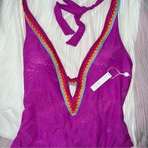 Bright crochet stitching adorns this white, one-piece swimsuit with a sophisticated monochromatic texture, making it the perfect one-piece for even the most elevated swim soirées. For land or sea, this white one-piece bathing suit is the perfect pick for timeless style.