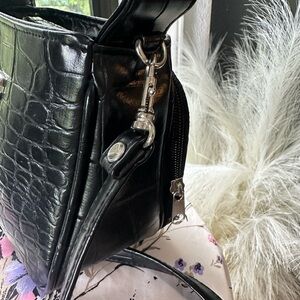 Vintage, 1990’s, DEADSTOCK. Leather (unsure if faux) mint condition crossbody. Interior red. Logo on outside center top. Inside tag logo. Back of purse has the essential 90’s section for your phone and pen. New without tag!