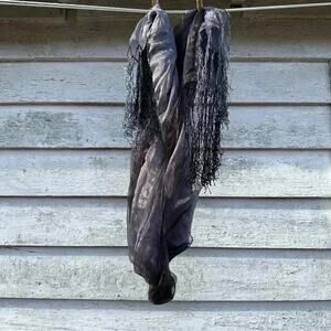 Collection XIIX Scarf Sheer, fades from light black to gray with tassels