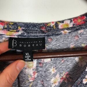 Collection by Bobeau Blue Floral V-Neck Short Sleeve Shirt