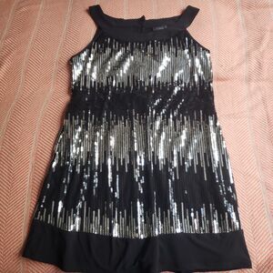 Collection by Dressbarn Silver/Black Sequined Mini Dress Sz 12 Cocktail Party