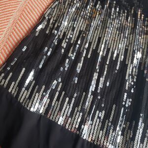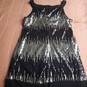 Sassy little black dress with silver and black sequins in a striped pattern. This is a shorter knee length cut. Perfect for a cocktail party or a night out with the girls. NWOT condition. I received this from a good friend who said it was tried on, but not worn.