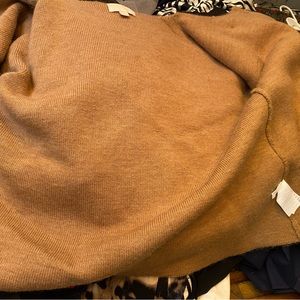 Very, very heavy, Collection crew caramel colored, bell sleeve sweater. It has some balling, the price will reflect this, but other than that it’s in good condition. Perfect for hanging around the house sweater.