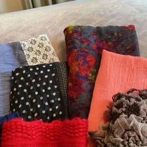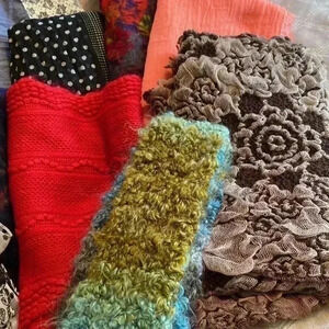 Collection of 11 scarves. Various size, weight and designs.