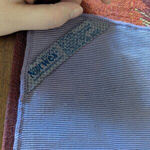 Large purple Norwex towel, grey mesh Norwex dish rag, blue other dish rag. Purple Norwex has some thread pulls, but all are great condition.