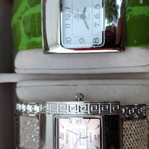 You get all 6 watches and the carry display case. They are all Japan Movement Quartz Ladies Watches. All need batteries.All are in Wearable condition. The gold tone watches are showing some slight discoloration & surface scuffs, yet very presentable. 1-Geneva , 3-Cannes, 1-Icing, 1-Dejuno.