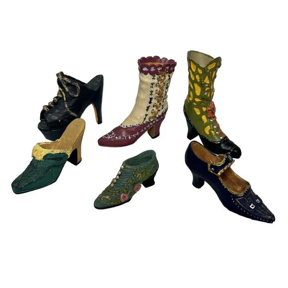 Collection of Womens Shoe Figurines (6), Victorian Style Miniature boots heels
