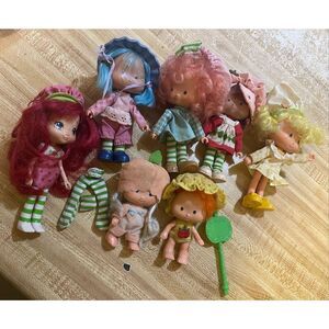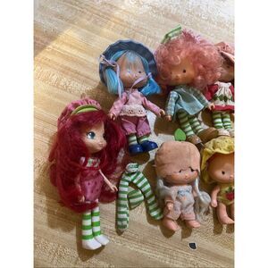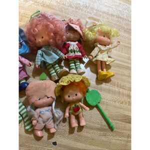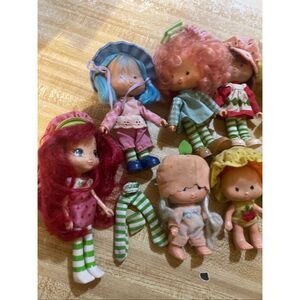 Adorable, vintage strawberry shortcake and friends dolls lot some do need a little TLC cleaning there is a spot on baby head but hat covers it please see photos
